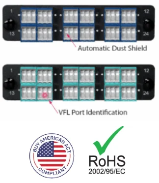 Fiber Adapter Panels provide Low Loss pass-through connections to simplify configuration of fiber optic networking equipment, and are frequently employed in a diverse range of applications like data center enclosures, telecommunication networks and enterprise networks. High Density Series fiber panels conform to the LGX standardized form factor and are therefore compatible with any LGX High Density Series of patch panel.